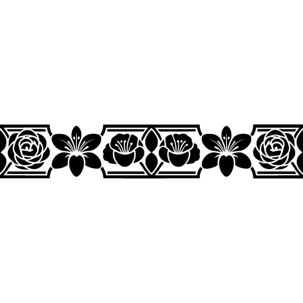 A continuous floral border featuring a repeating pattern of stylized roses and blooming flowers within geometric frames Free Vector