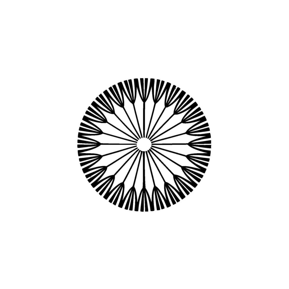 A minimalist illustration of a dandelion seed head or radial flower pattern with many thin lines emanating from a central circle vector