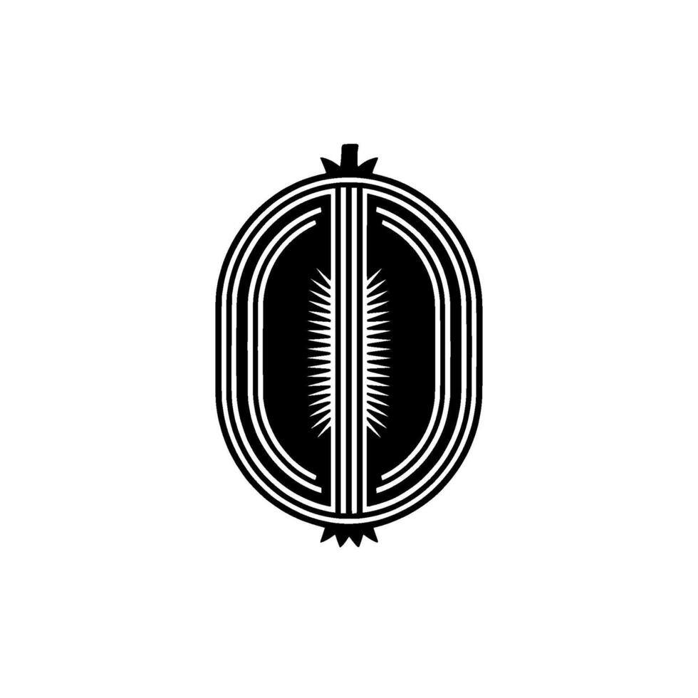 Stylized illustration of a halved pomegranate with intricate linear patterns Pro Vector