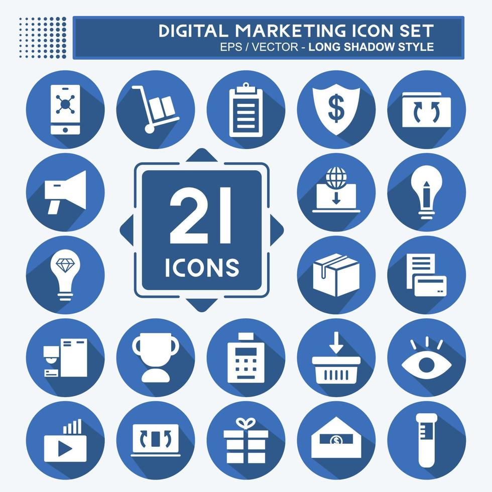 Digital Marketing Icon Set. suitable for Web Interface symbol. long shadow style. simple design editable. design template vector. simple symbol illustration Pro Vector