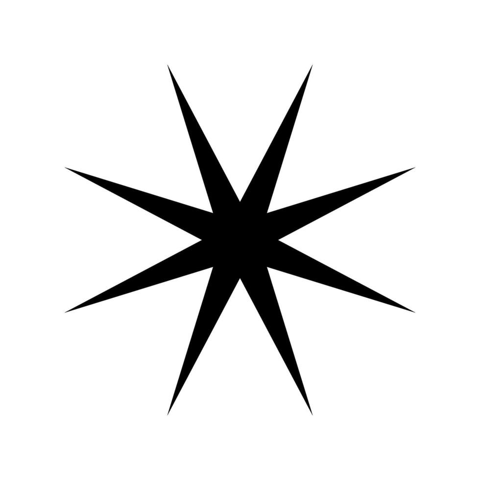 black eight point starburst icon on white background. Minimal sharp star shape illustration for logo, badge, sticker, highlight and graphic design element. Pro Vector