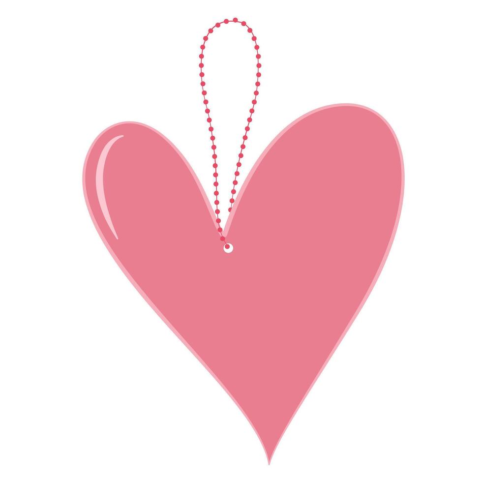 A simple pink heart ornament with a stitched outline and hanging string, creating a sweet romantic decorative element. Pro Vector
