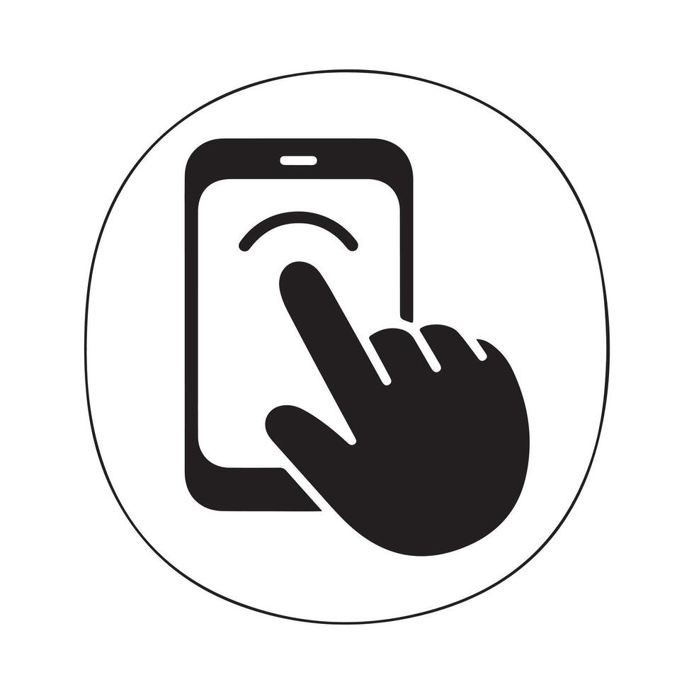 Simple graphic showing a hand interacting with a smartphone screen to indicate touch or swipe action Pro Vector