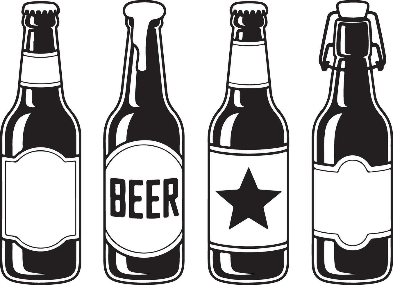 Set of beer bottles with various shapes and cap styles ideal for brewery labels and drinks Pro Vector