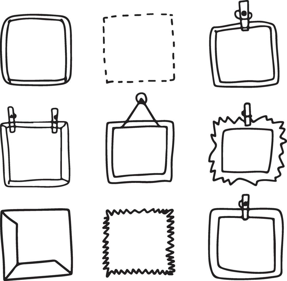 Collection of various hand-drawn doodle square and rectangular empty photo frames Pro Vector
