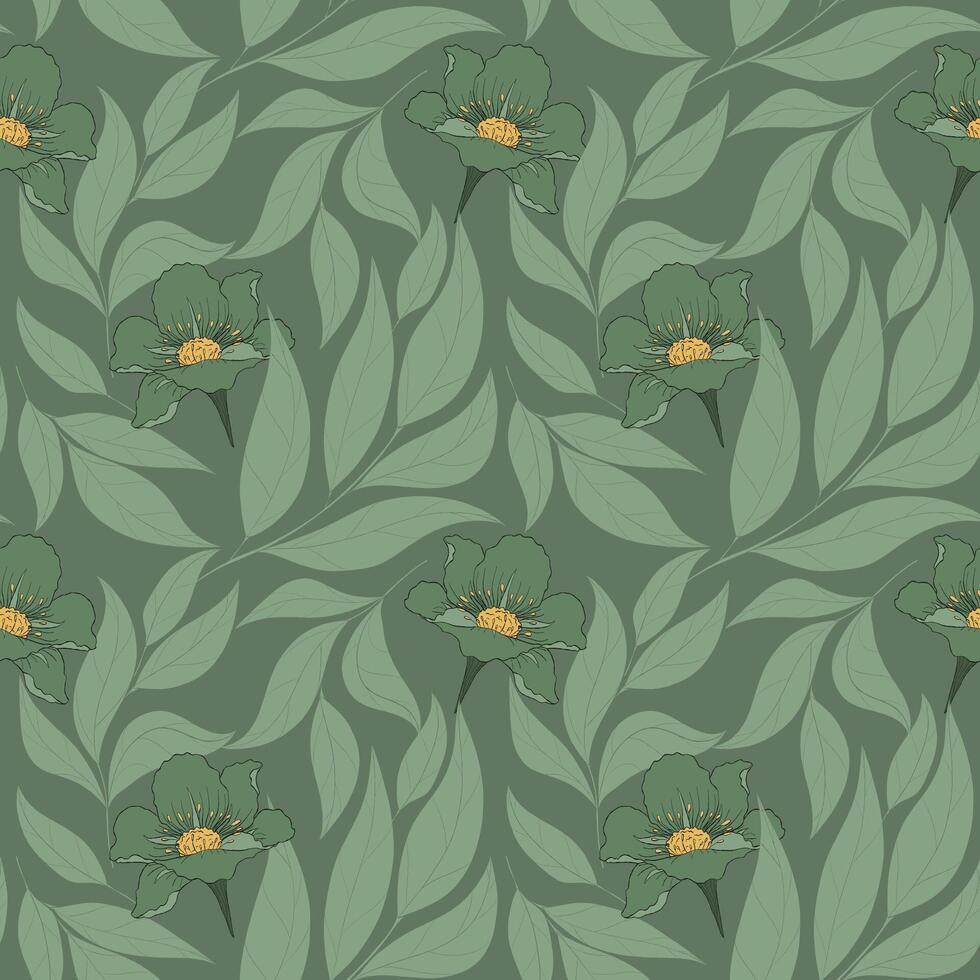 Spring pattern with flowers on dark green background. typography design for wrapping paper, wallpaper, textile, apparel Pro Vector