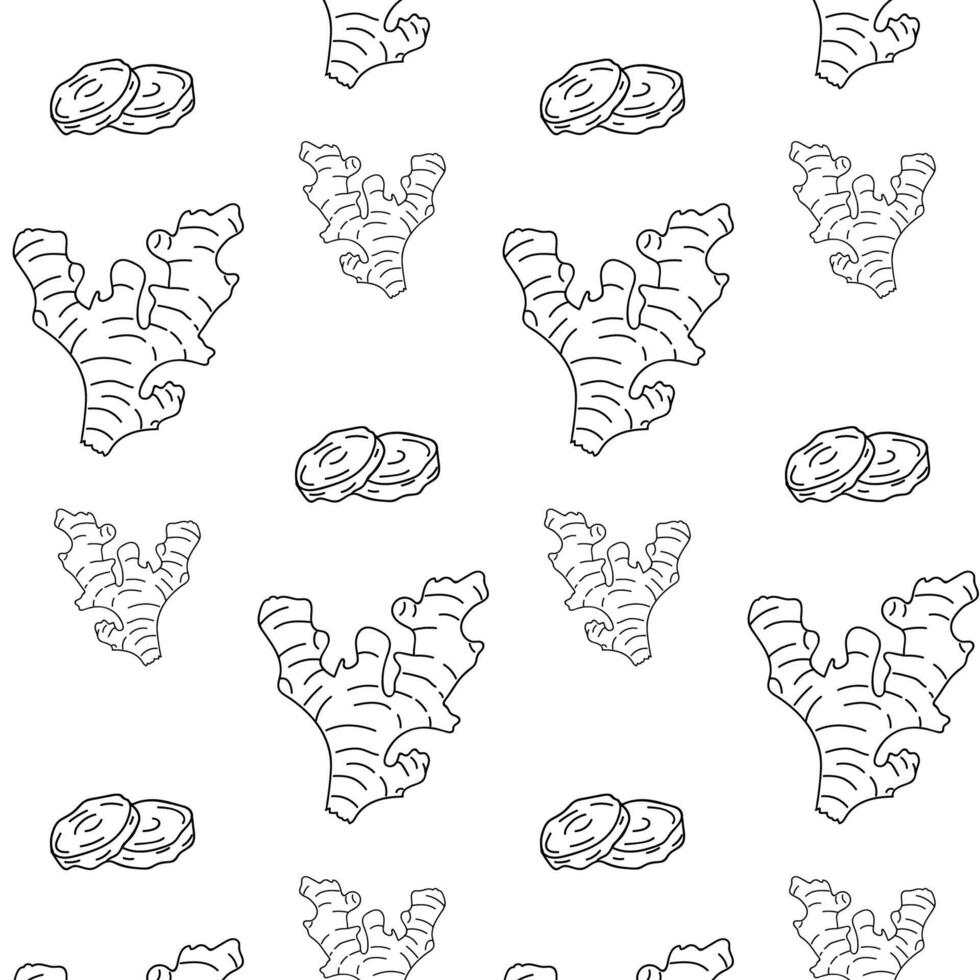 Ginger root and slices pattern on white background, ideal for packaging and culinary design projects Pro Vector