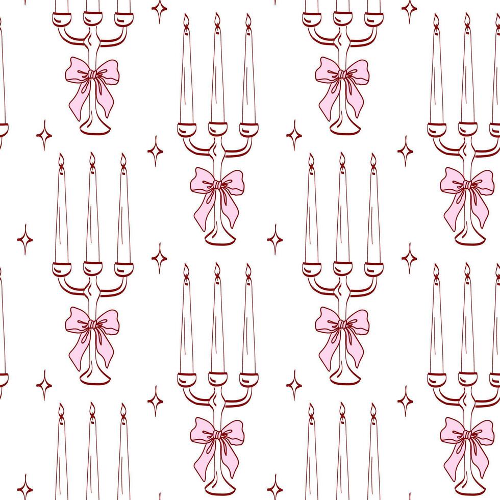 Candelabras with pink bows on a white background in a repeated pattern for decoration and design Pro Vector