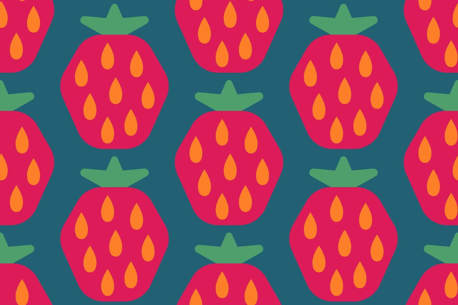 Seamless pattern of strawberry in retro geometric style. Retro pattern of strawberries Pro Vector