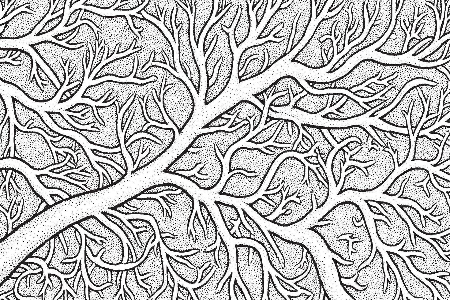 Intricate Black and White Fractal Tree Branching Pattern Pro Vector