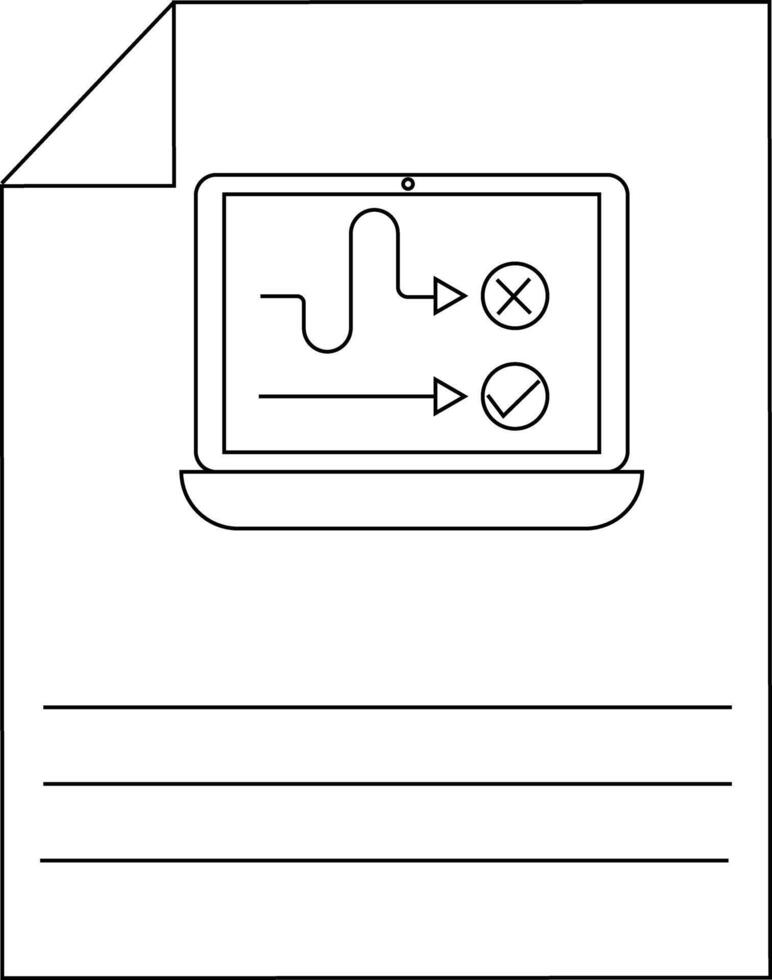 Minimalist line art of laptop with decision-making flowchart Pro Vector