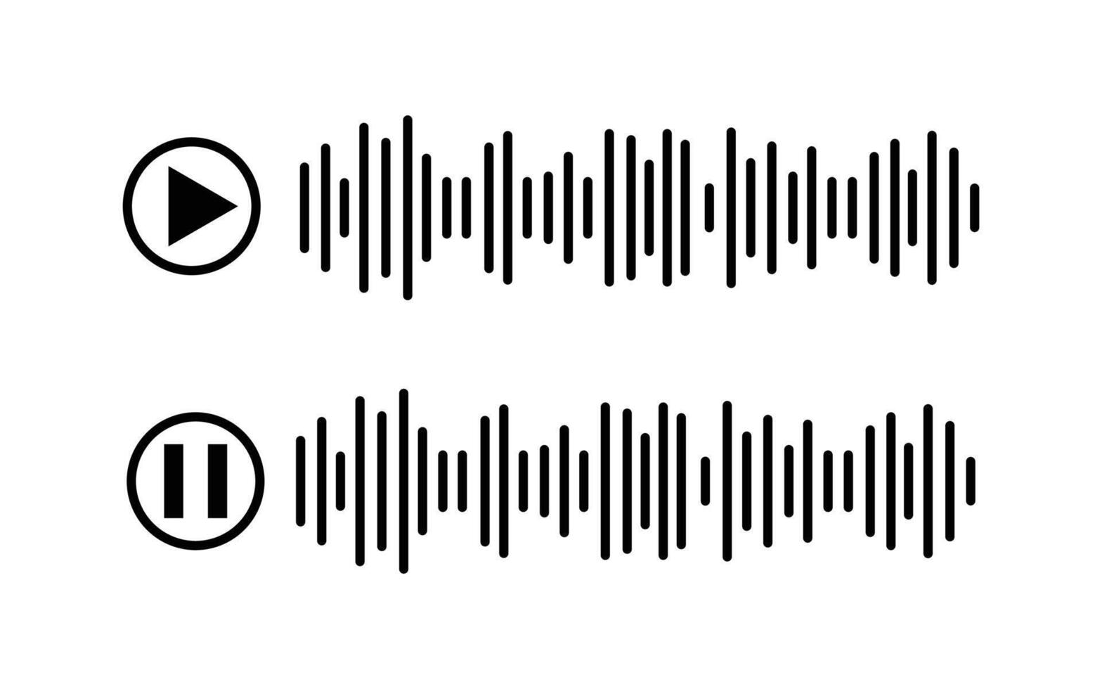 voice message icon set. Record voice note messages players with waveform. Pro Vector