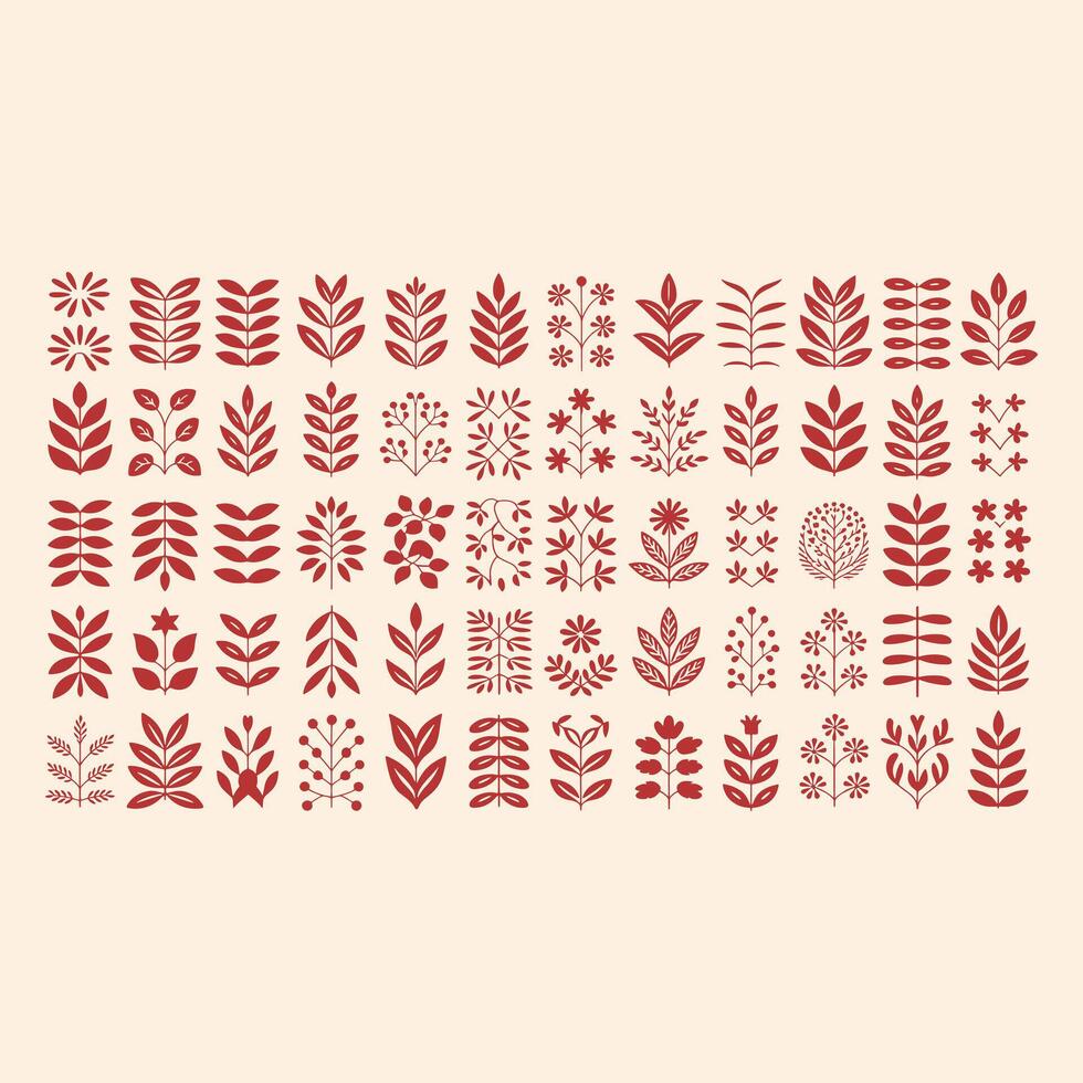 Collection of various red botanical arranged in a grid pattern leaves flowers Pro Vector