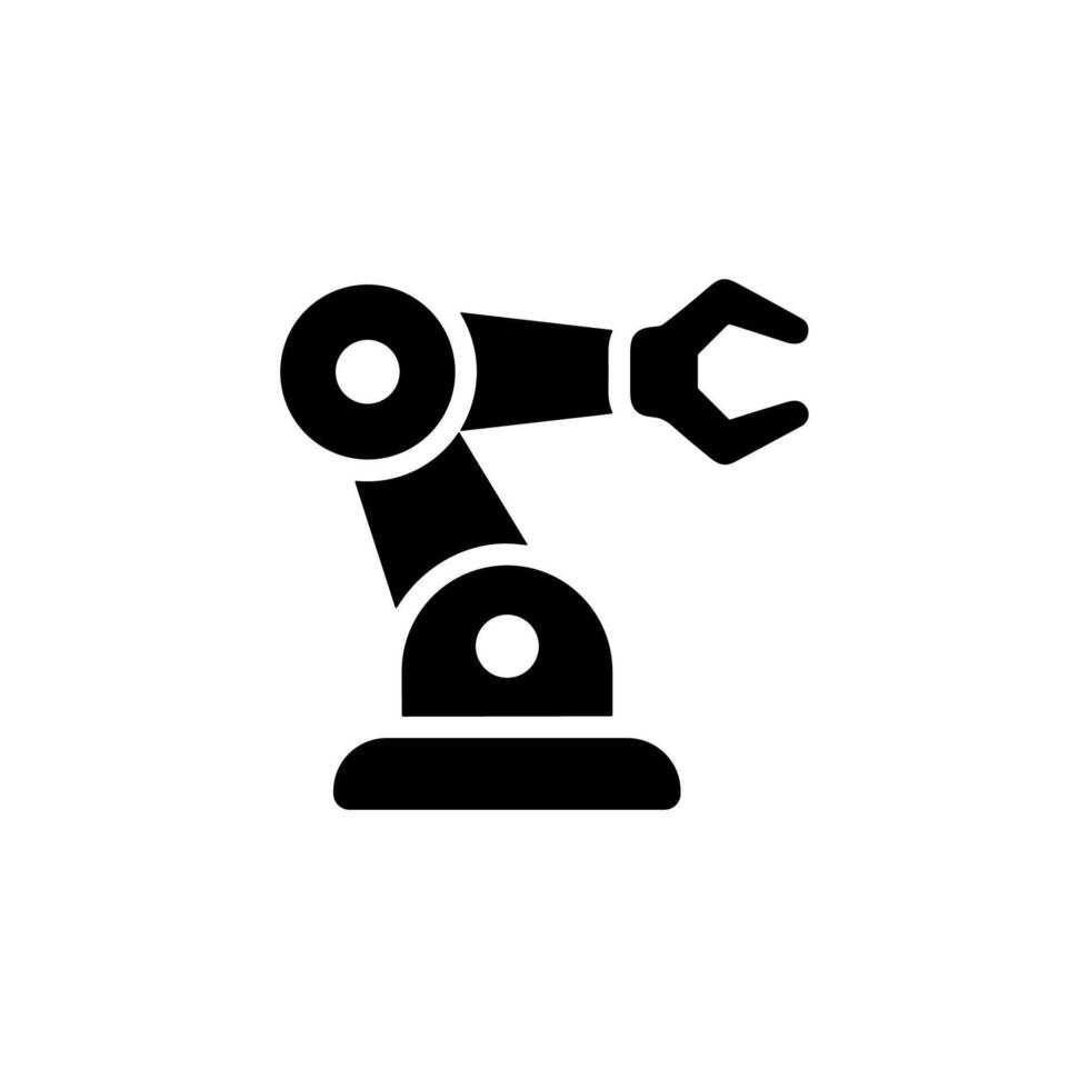 Minimalist Solid Robot Arm Assembly Line Automation Process Icon Pro Vector