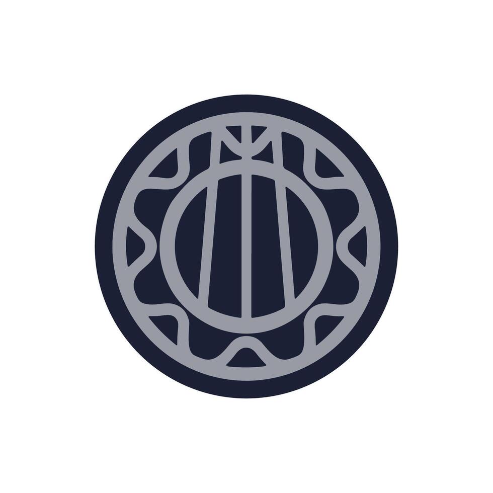 Simple Flat Round Seal Graphic with Central Three Bar Design Element Pro Vector