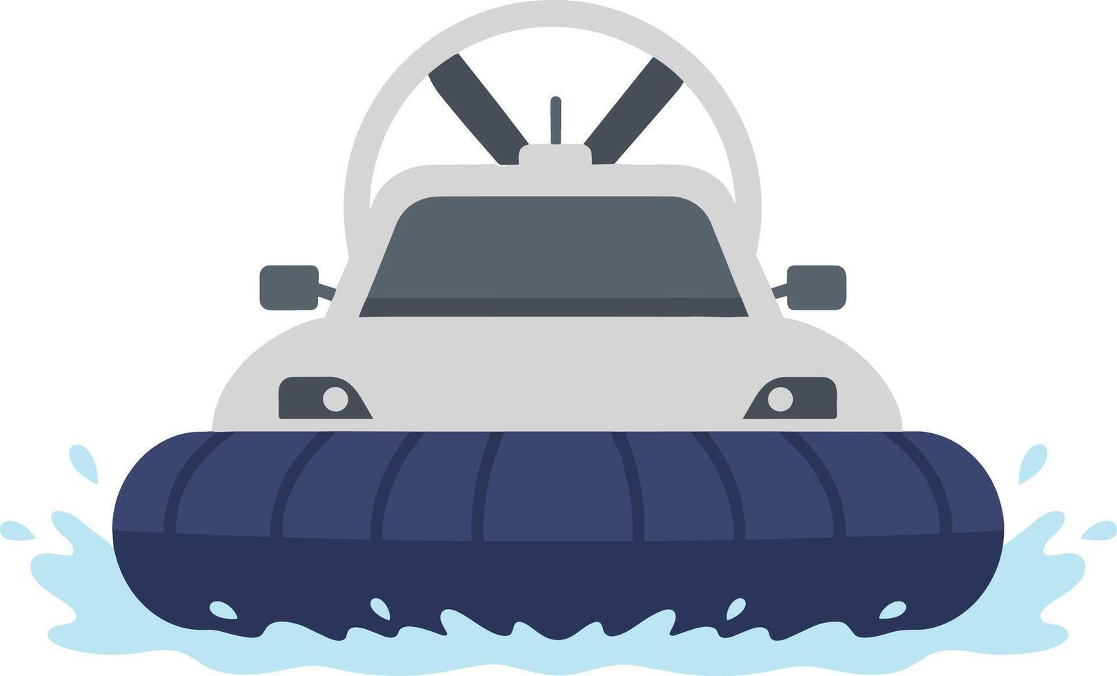 Flat Design Hovercraft Front View Moving Over Water Surface Icon Pro Vector