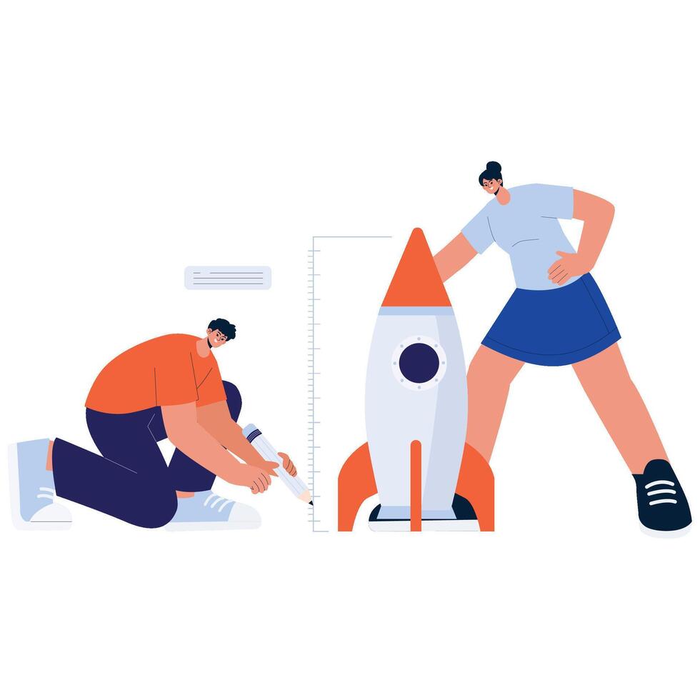 Engineers Collaborating on Rocket Preparation Pro Vector