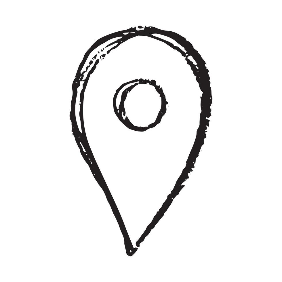 Hand drawn map pin Map marker pointer sign GPS and mapping tools Location pin symbol Pinpoint clipart in doodle style Single element for web, design navigation pinpoint Pro Vector