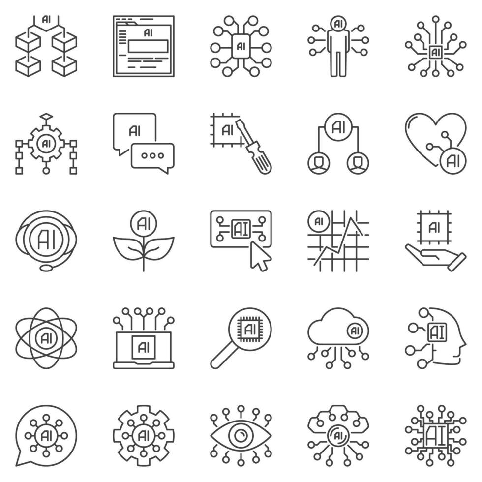 Artificial Intelligence outline icons set - AI Technology concept line symbols Pro Vector