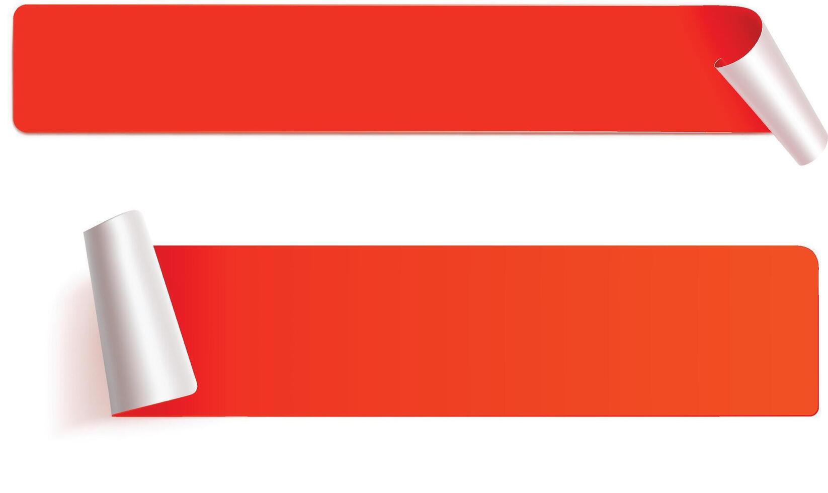 Two vibrant red horizontal banner stickers peeling up from a white background creating space for text vector