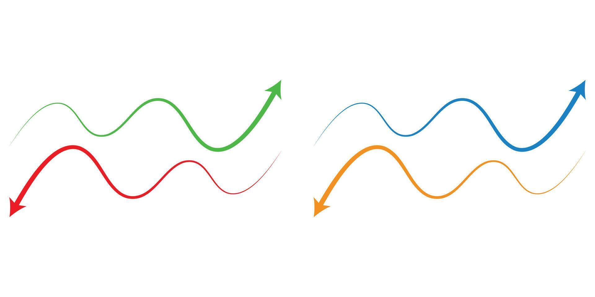 Business progress chart, up and down arrows illustrating movement, wavy line graph analysis, financial data visualization Pro Vector