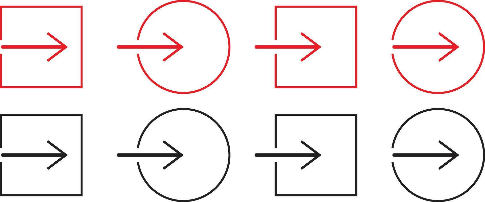 arrow icons, entry and exit symbols, red and black outlines, square and circular frames vector