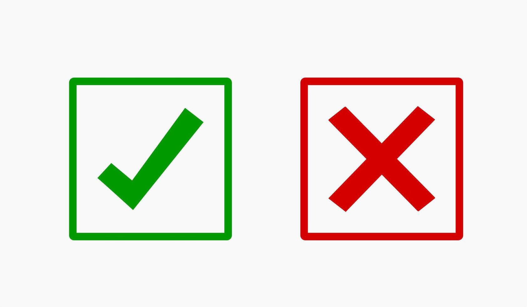 Red cross sign and check sign. a red grunge x, check mark and cross mark isolated, Check mark and red cross Free Vector