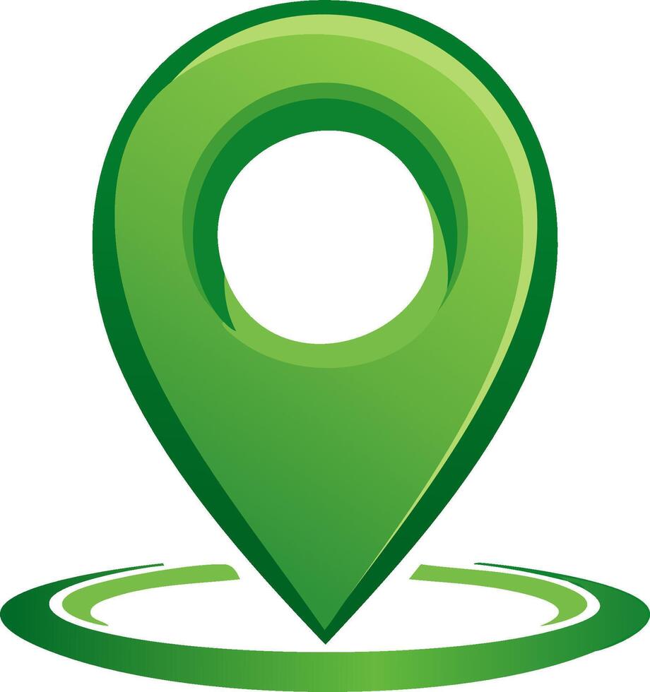 Green location pin emblem with circle outline, map marker, positioning symbol for geographic directions and navigation Pro Vector