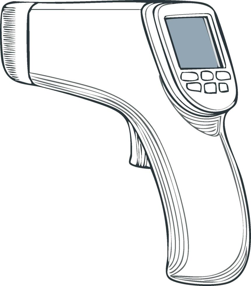 Infrared Thermometer Sketch Contactless Fever Detection, Digital Display, and Healthcare Device Illustration Pro Vector