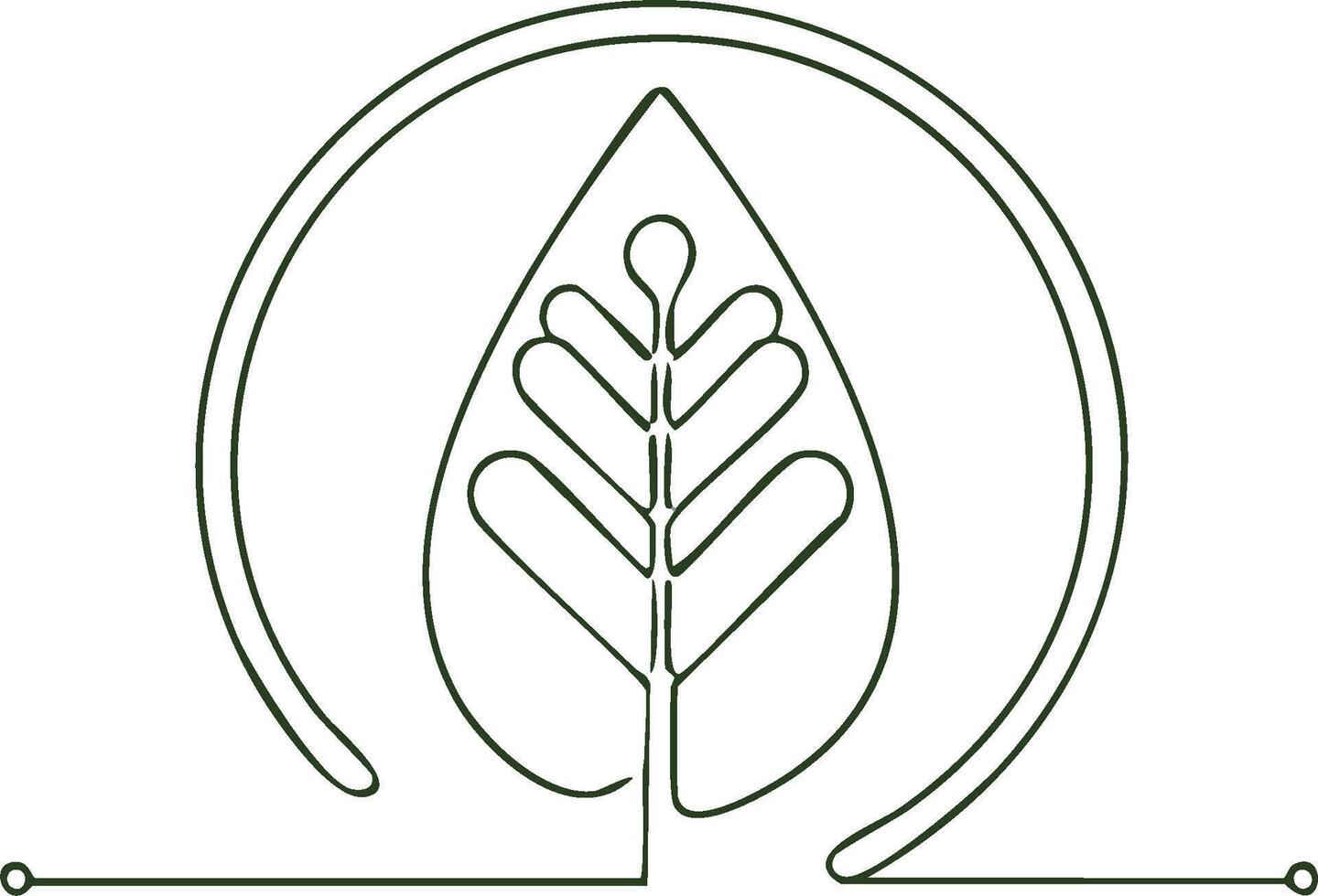 Minimalist continuous line drawing of a leaf inside of a circle creating a natural symbol Pro Vector
