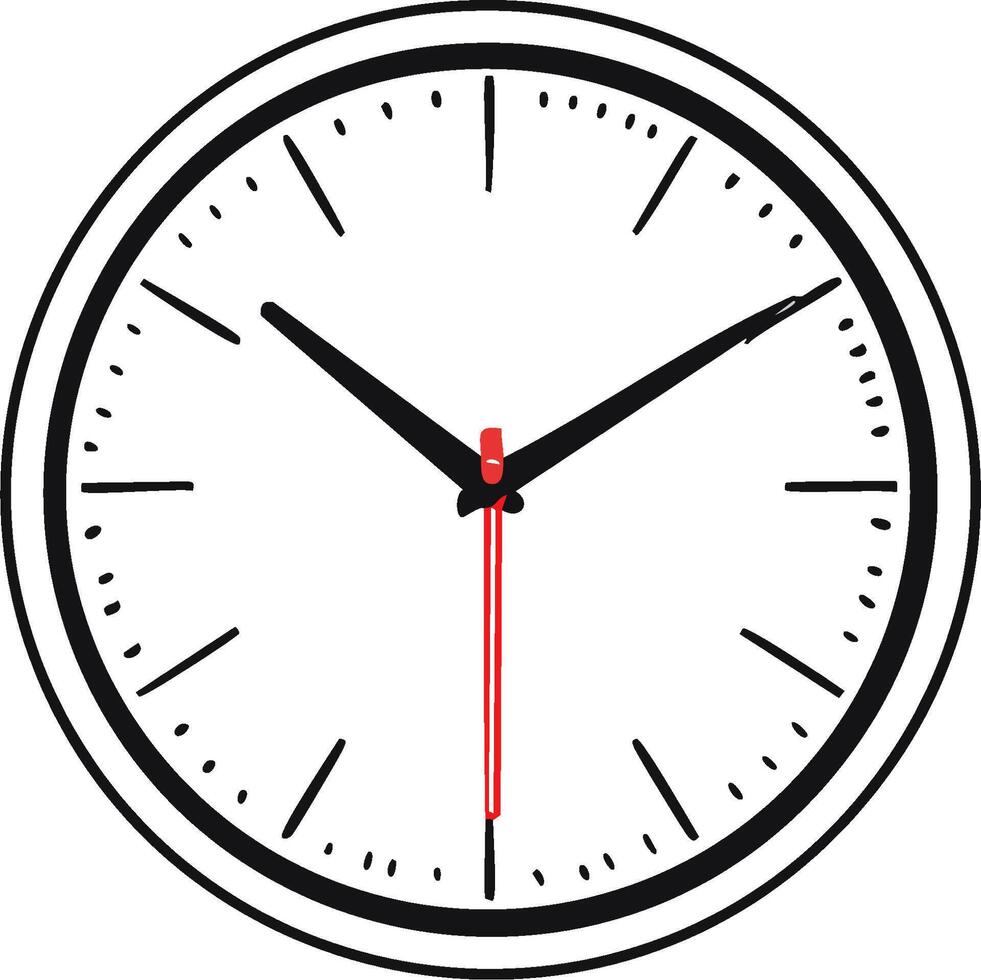 Clock face showing time round with a red second hand black numbers on white background Pro Vector