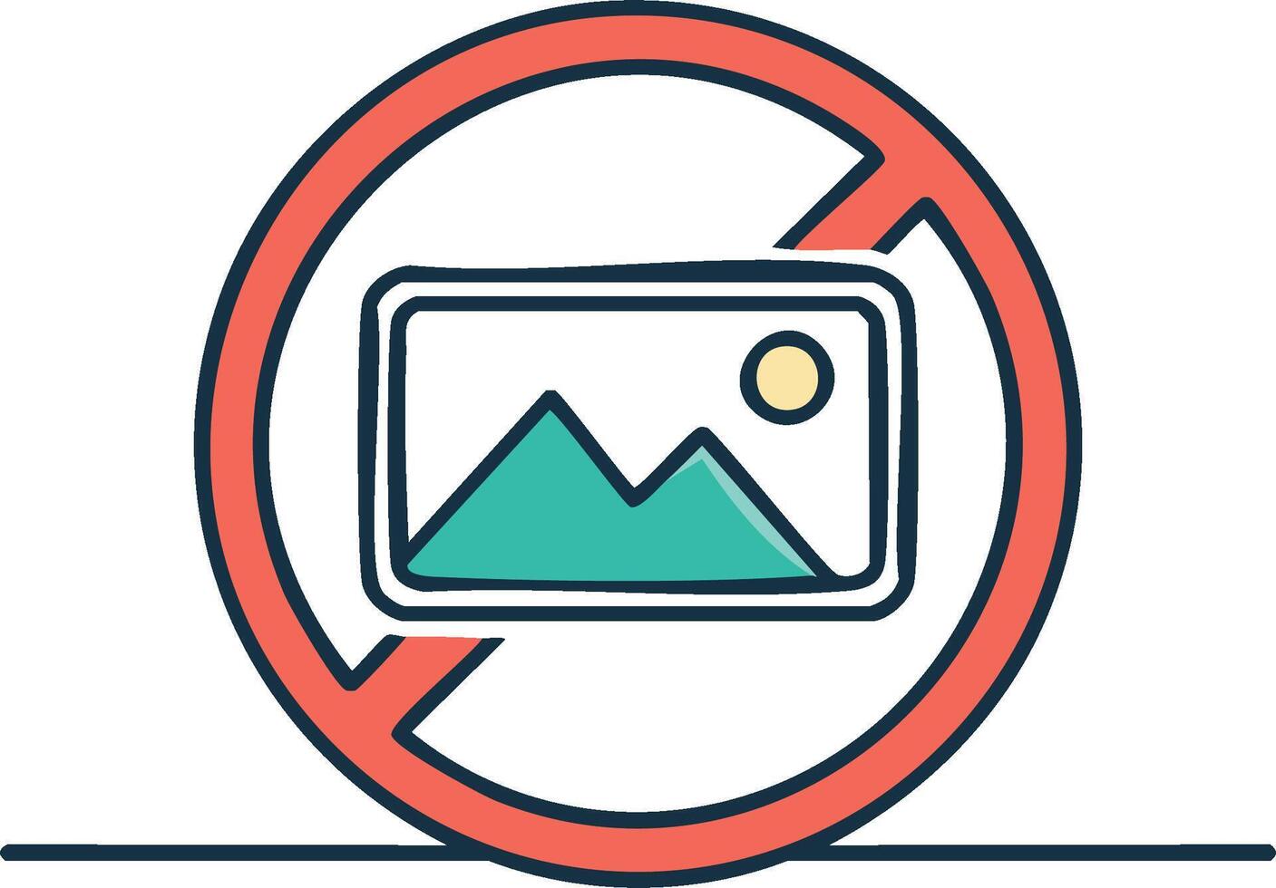 No Image Symbol, Restricted Image Access, Unavailable Photo Pictogram, Red Prohibition Circle Pro Vector