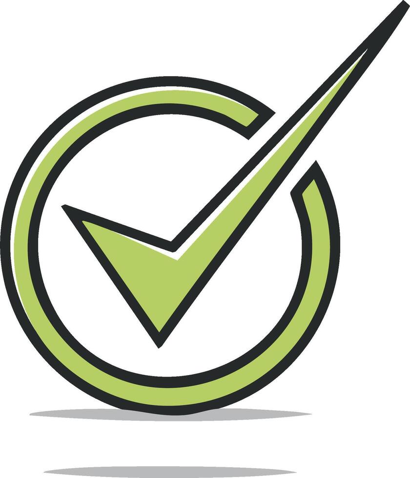 Green check mark symbol in a circle for approval, verification, or validation depicts a positive symbol of confirmation Pro Vector