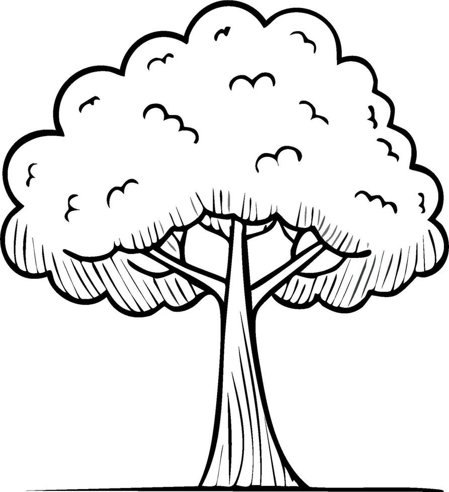 Tree sketch illustration simple outline of a tree with leafy crown and visible roots Pro Vector