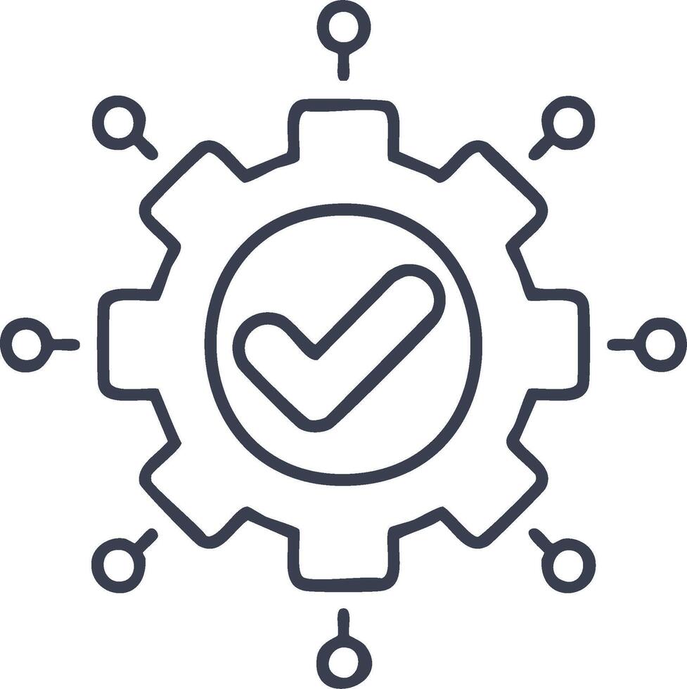 Gear with Checkmark Nodes - Modern Digital Tech Symbol Efficiency, Achievement, Connected System, Confirmation, Approval icon Pro Vector
