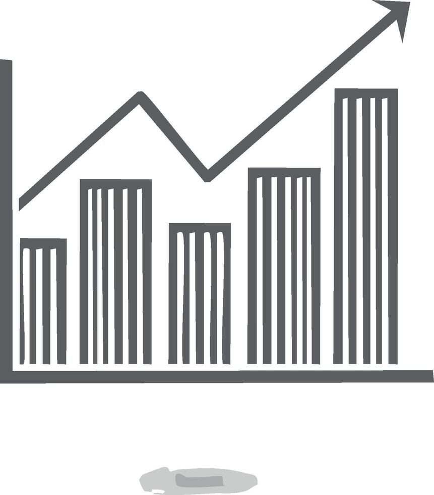 Bar chart with upward trending arrow graph depicting business growth and success in grayscale Pro Vector