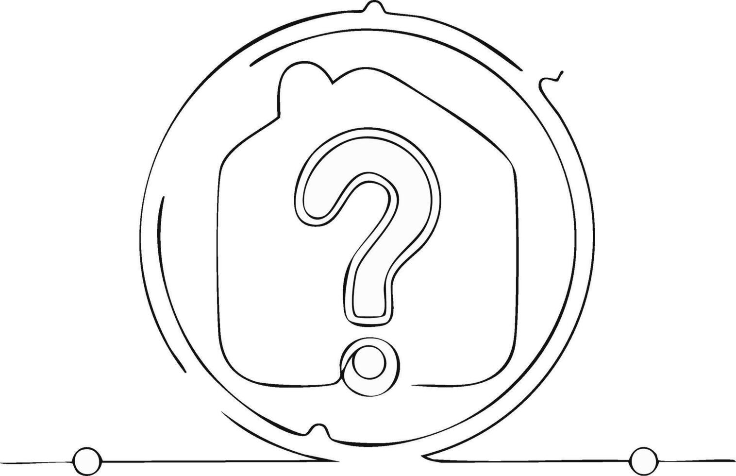 Simple line art showing house icon with question mark symbol inside a circle Pro Vector