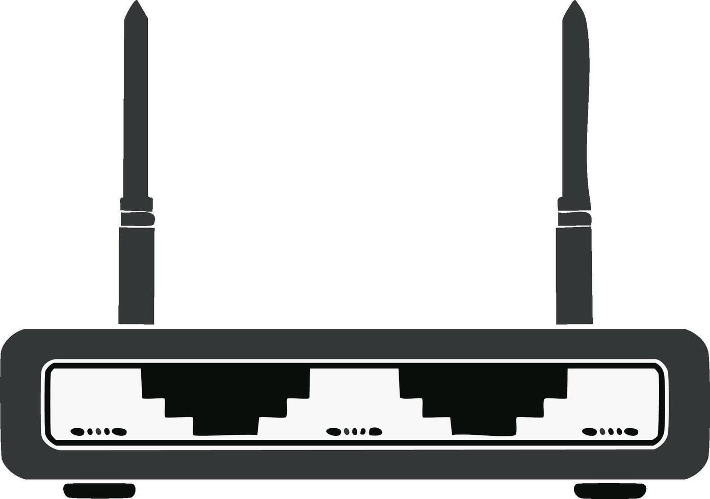 Wireless router device illustrating connections and technology signals for internet and networking access at home or office Pro Vector