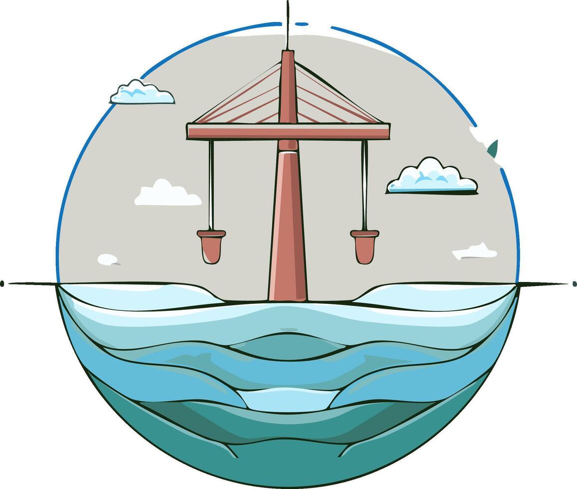 Conceptual Illustration of a Tower with Buckets over Water in a Circle Design Pro Vector