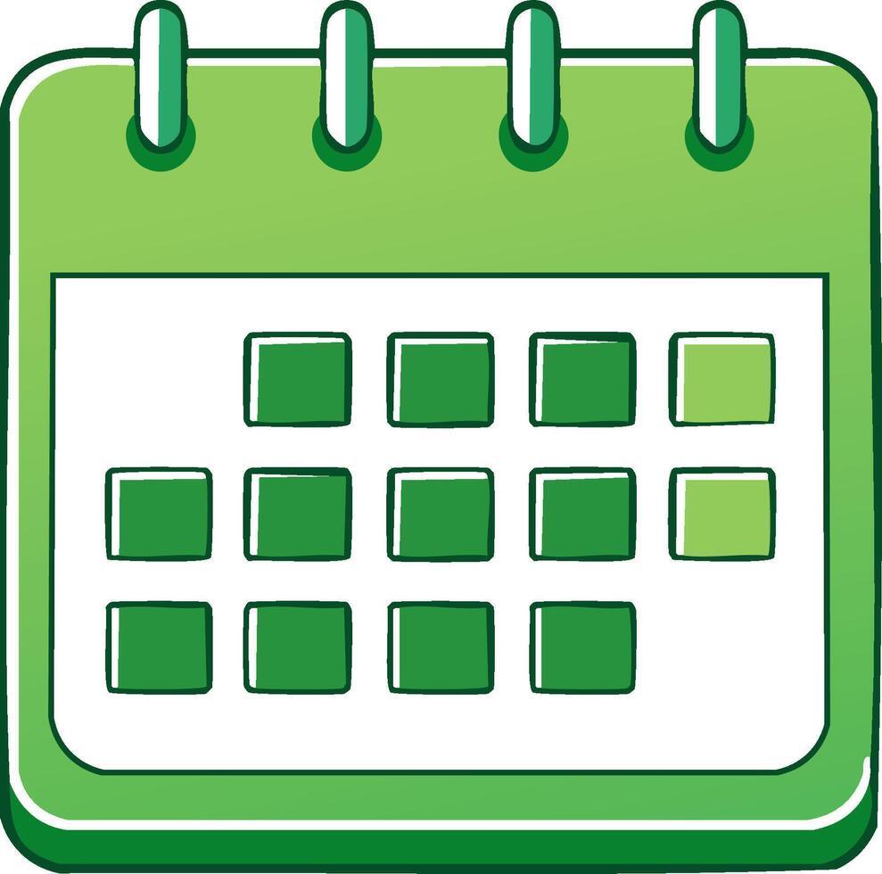 Green calendar icon showcasing organization and planning for events and time management activities in a simple design Pro Vector
