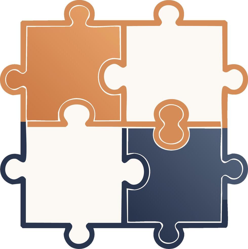 Four puzzle pieces connected. Solving problems, cooperation, teamwork, and abstract concept Pro Vector