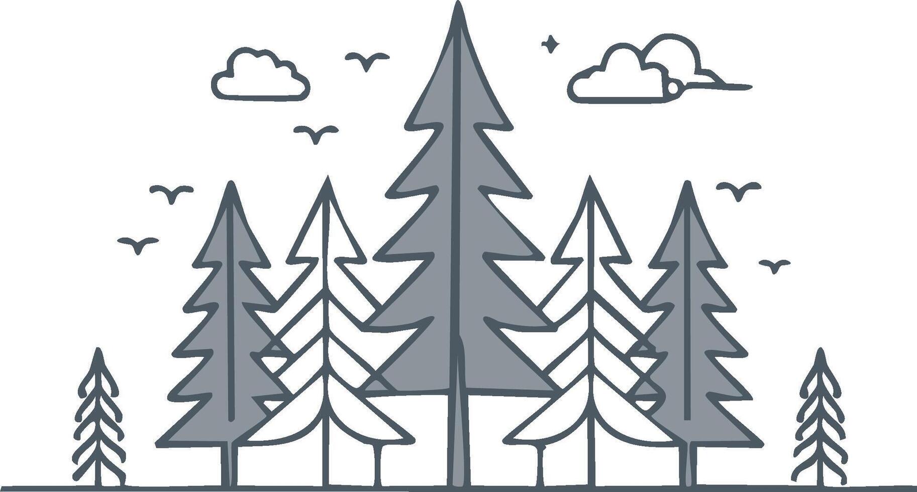 Minimalist Illustration of a Coniferous Forest with Pine Trees and Clouds in Flat Design Pro Vector