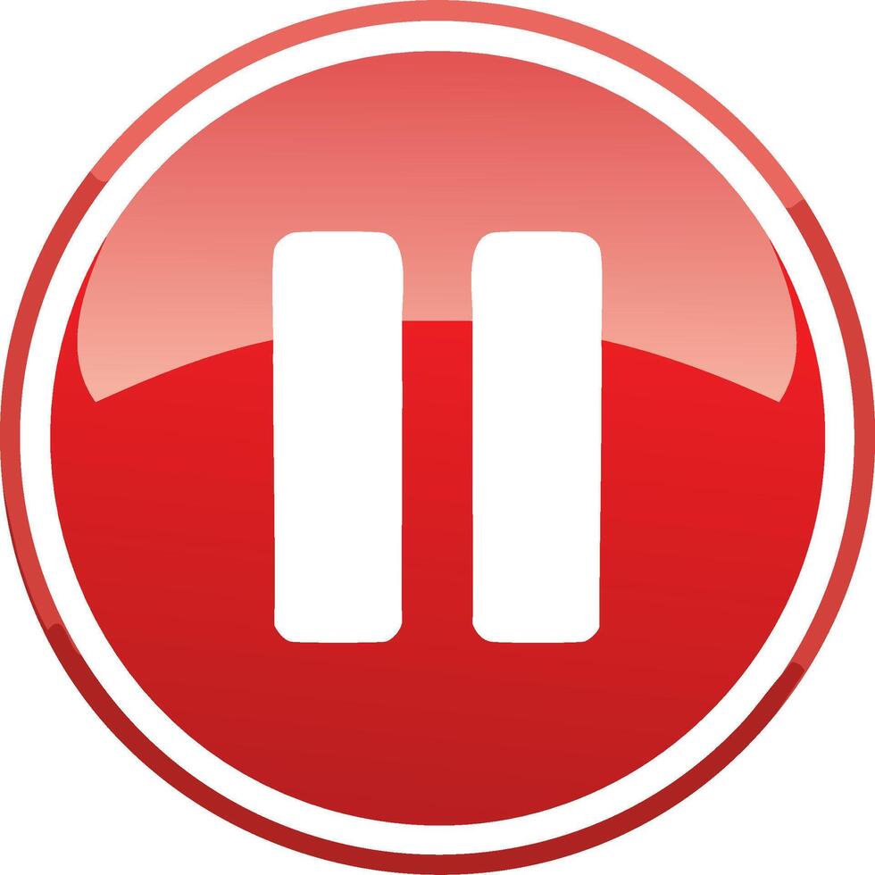 Red Round Glossy Pause Button for Media Playback and User Interface Navigation Pro Vector