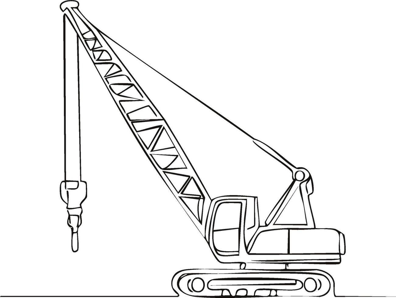 Simple Line Drawing of a Crawler Crane on a Construction Site, Side View of a Vehicle Used for Lifting Heavy Materials Pro Vector