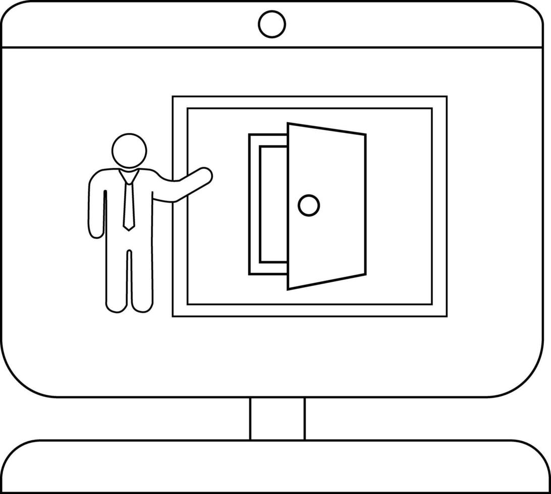 Businessman presenting online concept with open door on computer screen Pro Vector