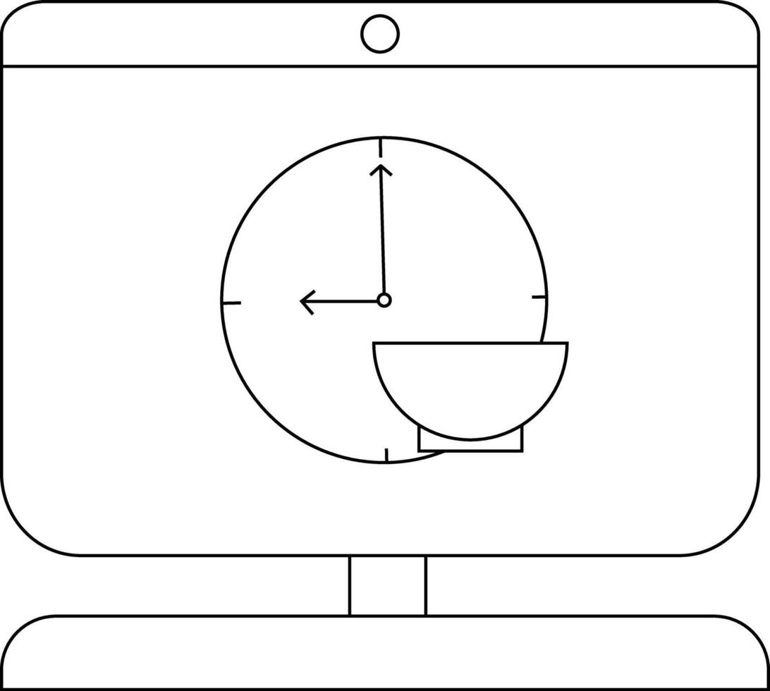 Minimalist line art of a computer with clock and bowl icons Pro Vector