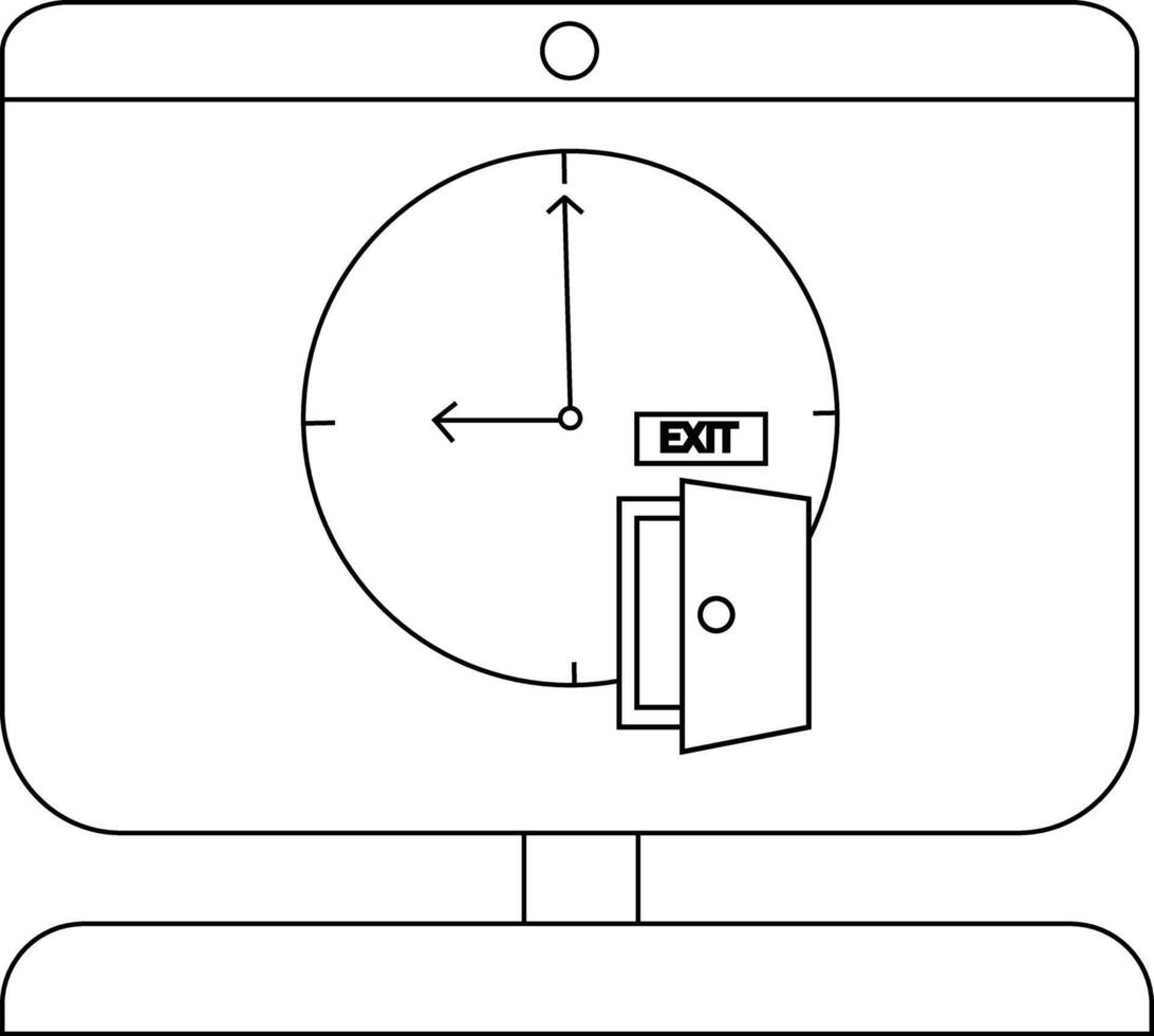 Minimalist illustration of clock with open door and exit sign Pro Vector