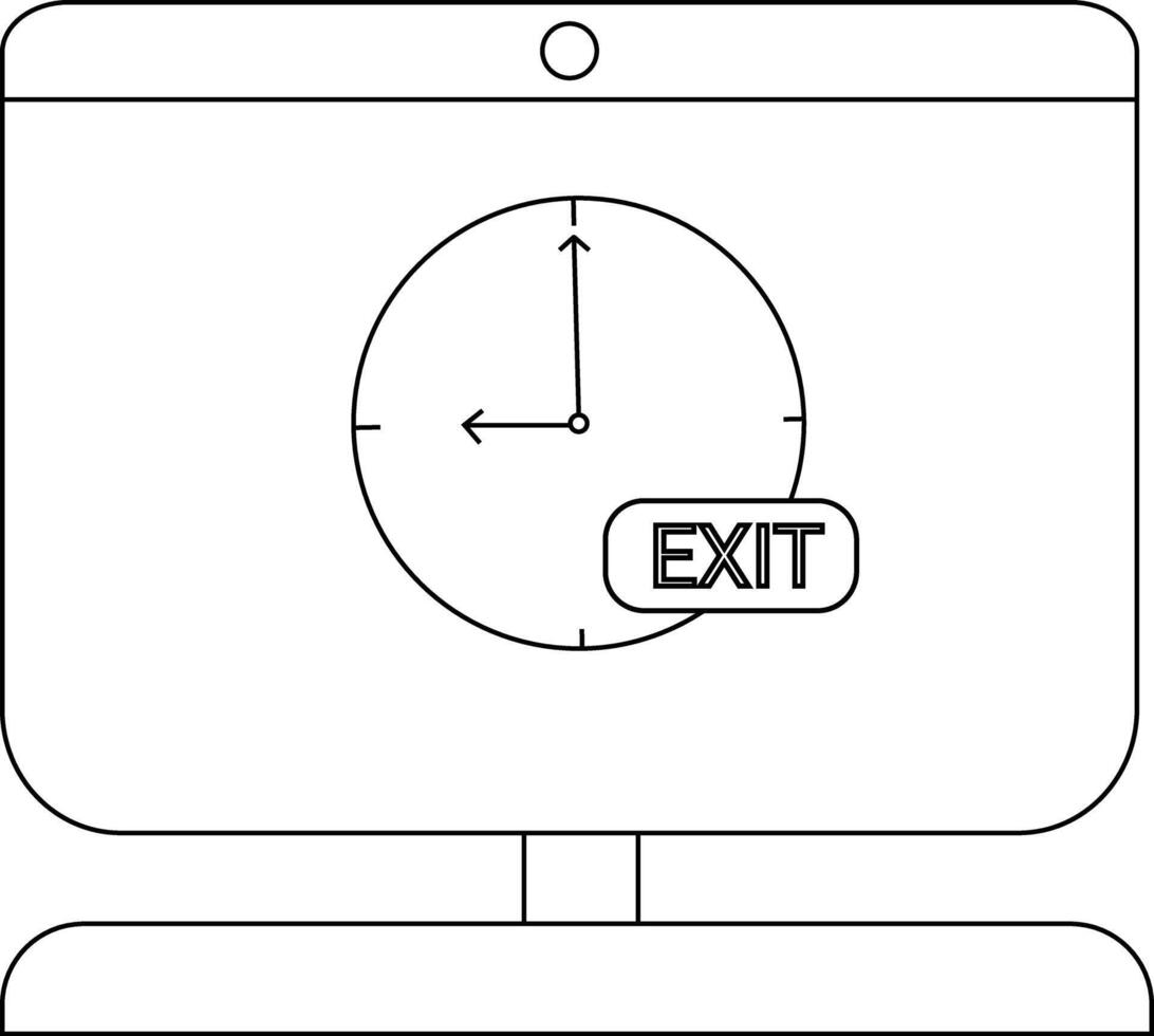Minimalistic computer screen with clock and exit sign illustration Pro Vector