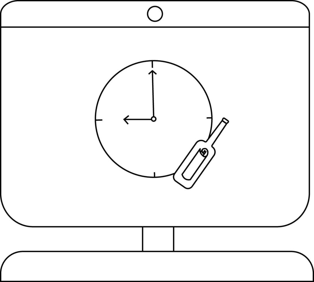 Minimalist Computer Screen with Clock and Wine Bottle Icon Pro Vector