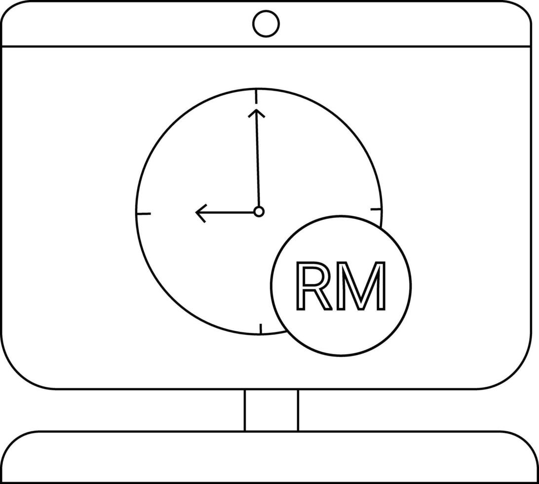 Minimalist computer screen with clock and RM symbol illustration Pro Vector